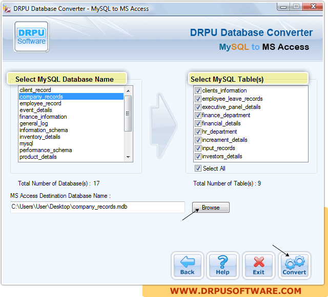 DRPU Database Converter - MySQL to MS Access Screenshots